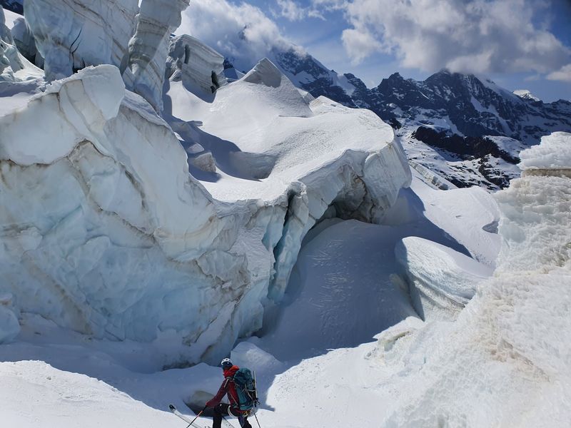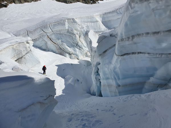 Schöner Zustieg durch den Gletscher, dann anspruchsvollere Überschreitung