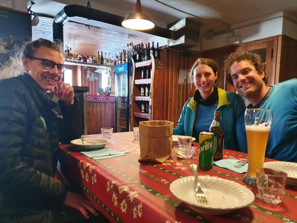 Abermals waren wir die einzigen auf der Hütte und der Hüttenwirt verwöhnte uns mit Pizza, Pasta und Hauptspeise. Natürlich durfte auch der Schnaps nicht fehlen.